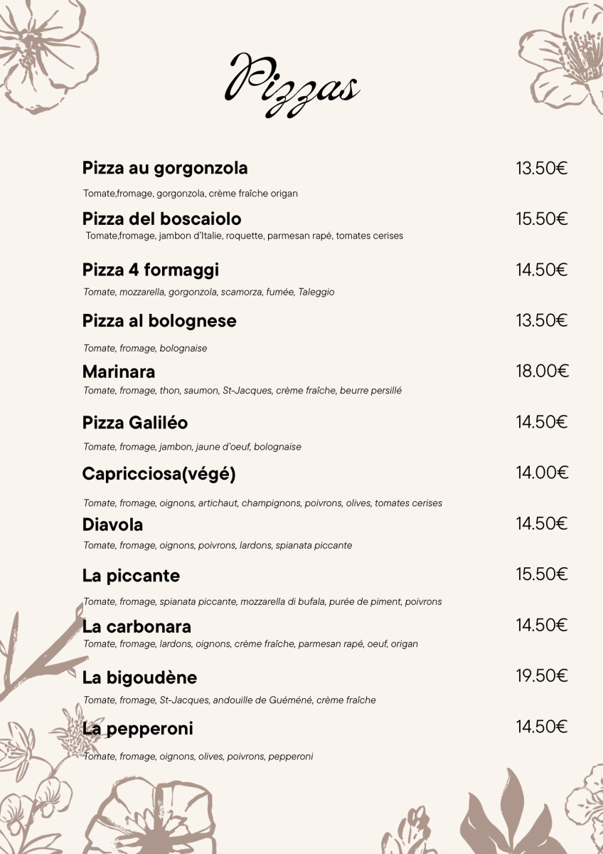 Nous sommes fiers d'offrir à nos clients des moments gastronomiques uniques dans notre restaurant au cœur d'Erdeven. Chez GALILÉO, chaque pizza est une œuvre d'art préparée avec passion et savoir-faire.